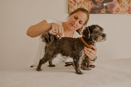 Wenn ihr zur ersten Sitzung bereits einen Vorbericht und eine Diagnose vom Tierarzt mitbringen könnt, ist das sehr hilfreich. Trotzdem untersuche ich euer Tier mithilfe unterschiedlicher Methoden von Kopf bis zur Schwanzspitze, um mögliche weitere Probleme erkennen und behandeln zu können.